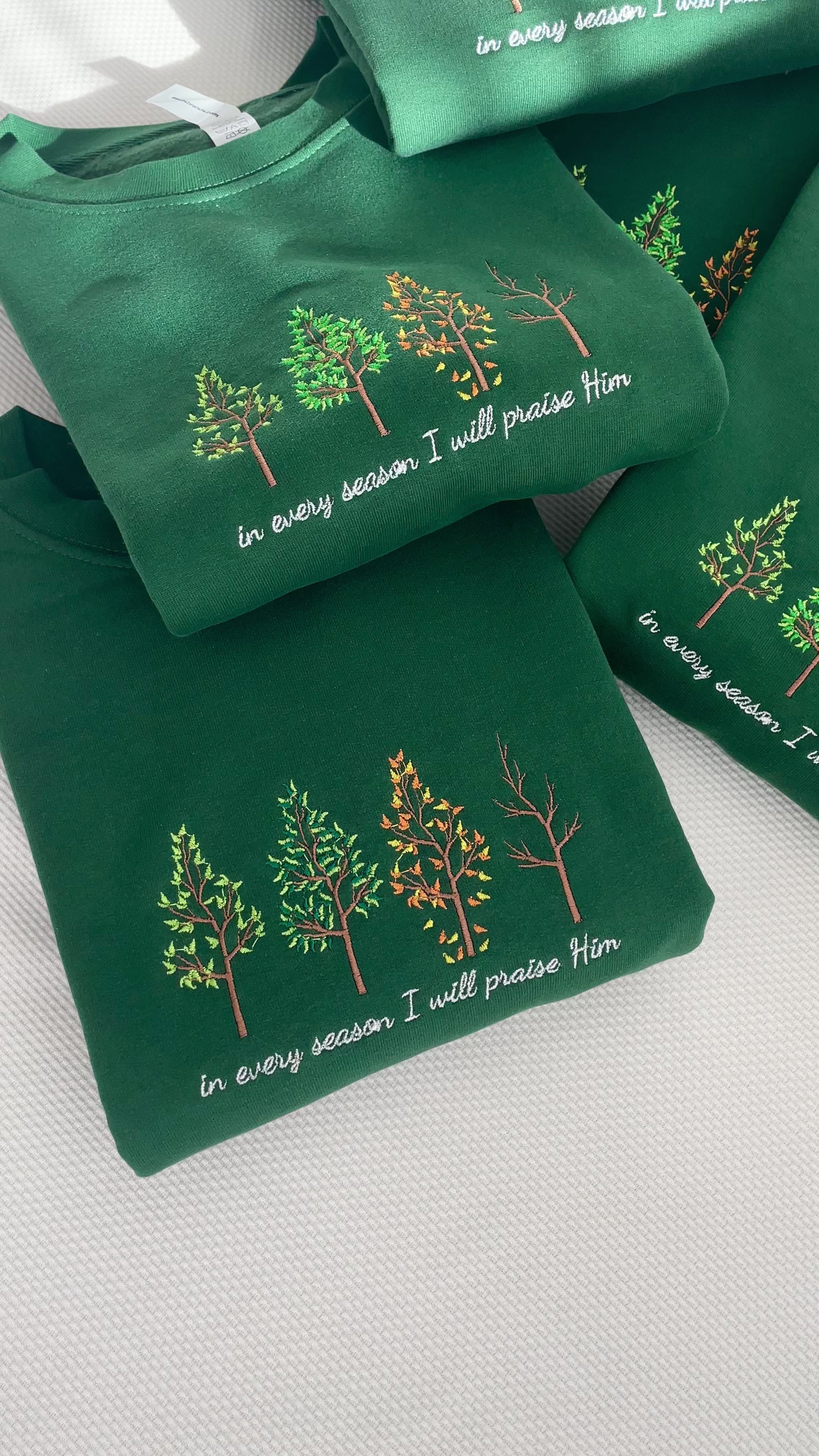 In Every Season I Will Praise Him Embroidered Sweatshirt