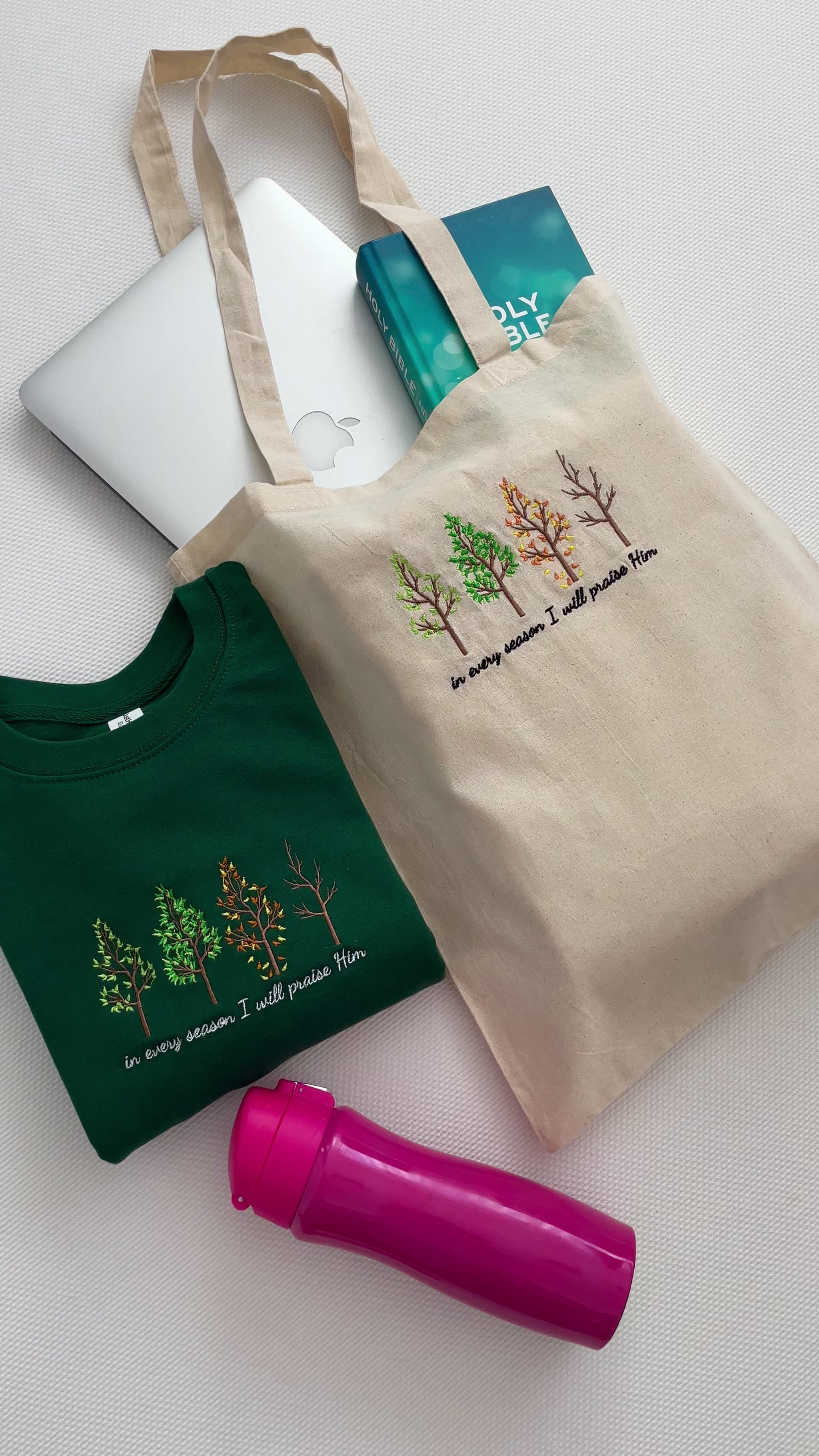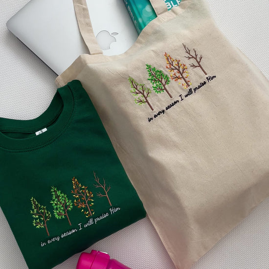 In Every Season I Will Praise Him Embroidered Tote Bag