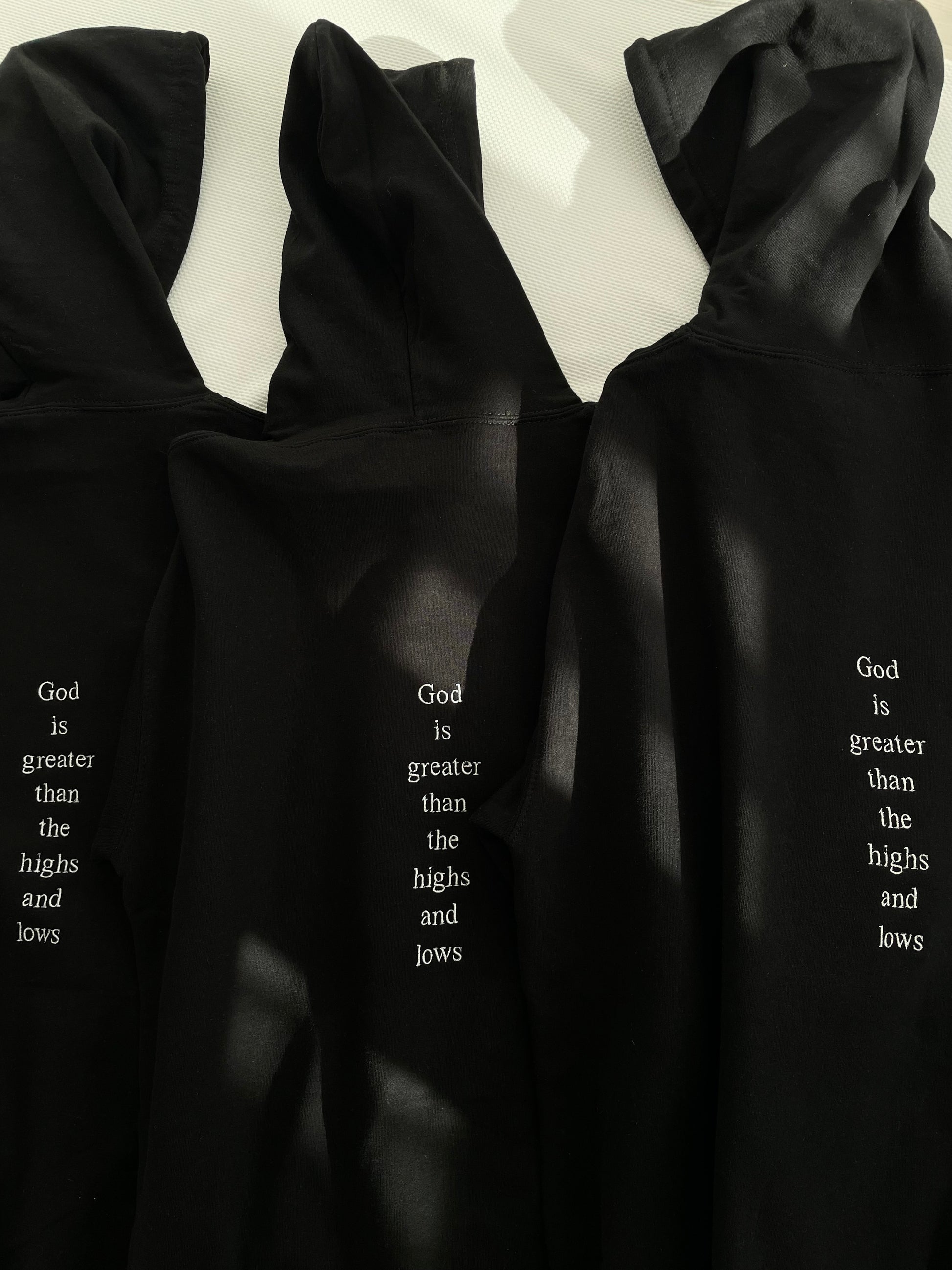 God is greater than the highs and lows - embroidered hoodie